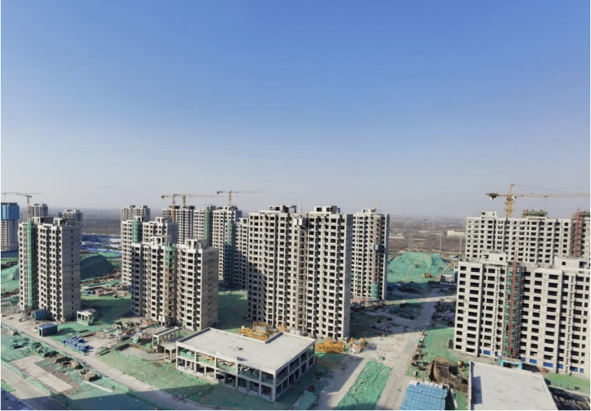 北京大兴国际机场噪声区安置房项目是北京市、大兴区重大民生民心工程,对于改善百姓生活质量、推动区域协同发展、促进社会和谐稳定具有重要意义。该项目于 2019年底开工建设,经过一整年的努力,一座座高楼拔地而起,目前两组团已完成结构封顶,全面进入装饰装修施工阶段。
