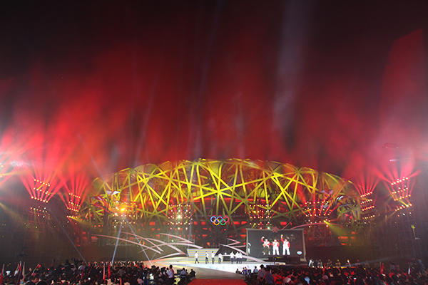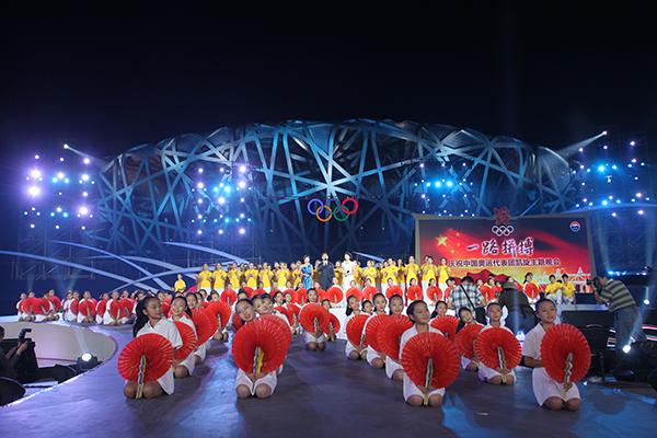由国家体育总局和北京市政府主办,北京电视台承办的“一路拼搏——庆祝中国奥运代表团凯旋主题晚会”于2012年9月3日晚在北京奥林匹公园中心区庆典广场举行。初秋的庆典广场星光璀璨、明星云集,刚刚在第30届伦敦夏季奥运会上载誉而归的林丹、易思玲、曹缘、陈一冰、张成龙、赵云蕾, 陈定、邹市明、雷声、李娜、蔡赟、傅海峰、张楠等13名奥运冠军集体亮相,不仅现场用精彩的才艺表演展现了奥运冠军的多才多艺,还讲述了他们拼搏背后的成长故事,表达了对祖国和人民的感激之情。同时,成龙、谭晶、戴玉强、莫华伦、羽泉、朗朗、胡彦斌、齐秦、萨顶顶、李宇春、林妙可等演艺界明星鼎力助阵,用精彩的文艺演出为奥运冠军庆功。