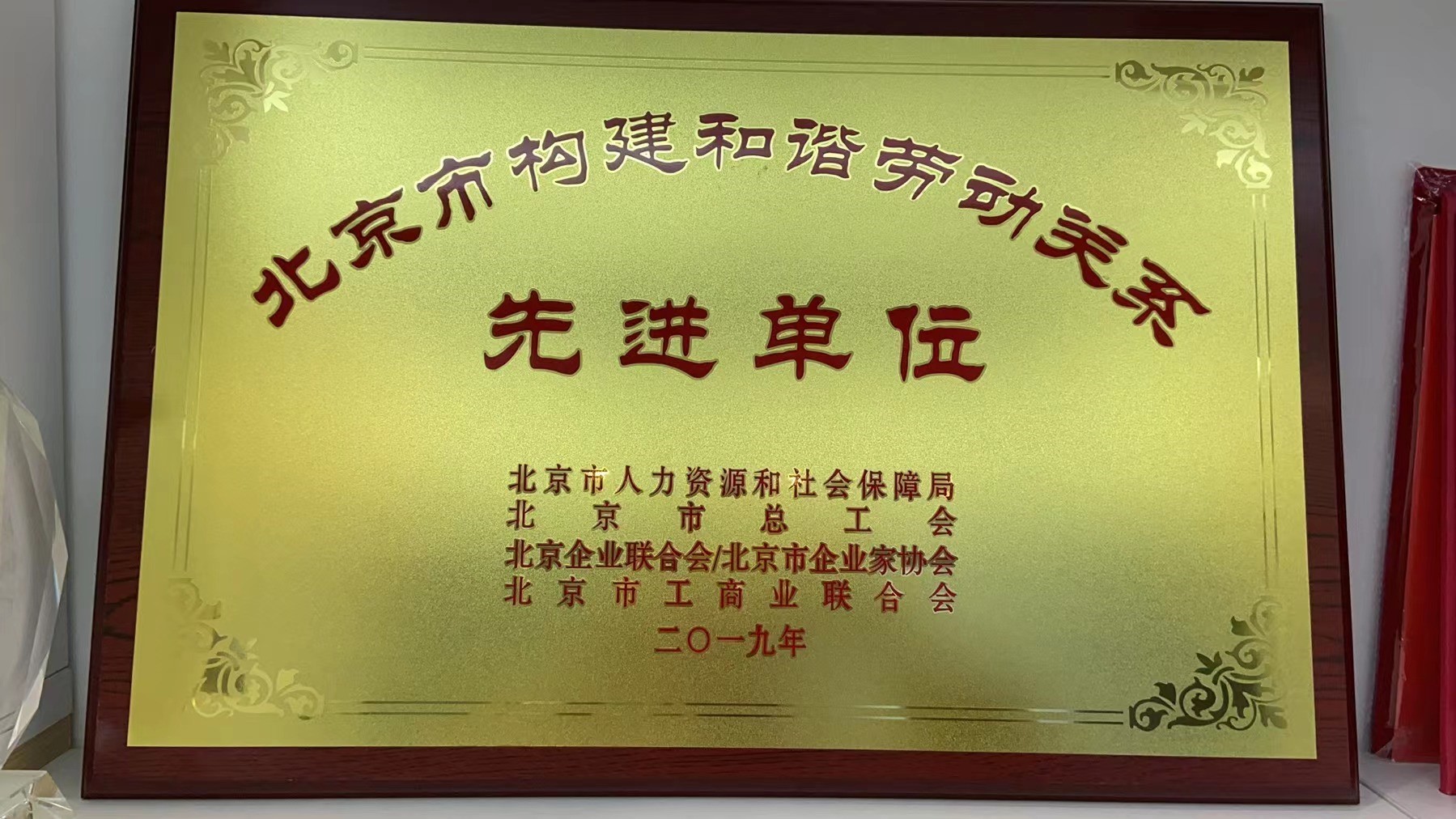 2019年北京市构建和谐劳动关系先进单位