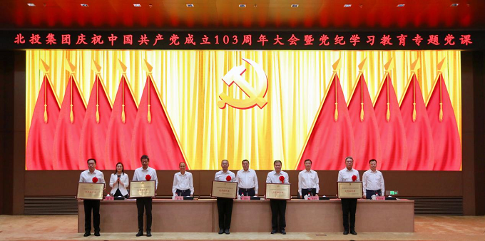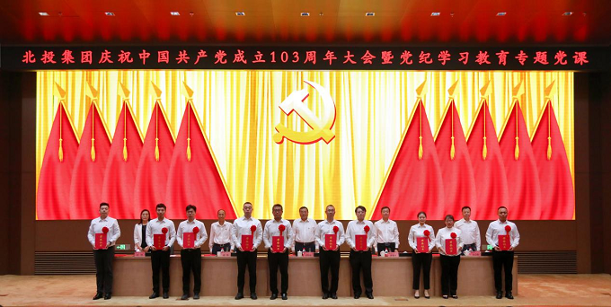 7月3日,集团举行庆祝中国共产党成立103周年大会暨党纪学习教育专题党课,回顾建党103年来的光辉历程,庆祝党的生日,表彰先进、凝聚力量,进一步激励集团各级党组织和广大党员奋勇争先、真抓实干,为集团高质量发展,为将城市副中心打造成为中国式现代化进程中的城市发展样板贡献力量。集团党委委员、领导班子成员,全体中层领导人员,二级单位领导班子成员,全体党员和党员发展对象,集团团委委员及受表彰人员等700余人参加。会议由集团党委委员、纪委书记荫春涛同志主持。
